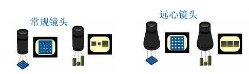普通工業(yè)鏡頭目標(biāo)物體越靠近鏡頭(工作距離越短),所成的像就越大。在使用普通工業(yè)鏡頭進(jìn)行尺寸測(cè)量時(shí),會(huì)存在如下問(wèn)題:1)由于被測(cè)量物體不在同一個(gè)測(cè)量平面,而造成放大倍率的不同;2)鏡頭畸變大3)視差也就是當(dāng)物距變大時(shí),對(duì)物體的放大倍數(shù)也改變;4)鏡頭的解析度不高;5)由于視覺(jué)光源的幾何特性,而造成的圖像邊緣位置的不確定性。